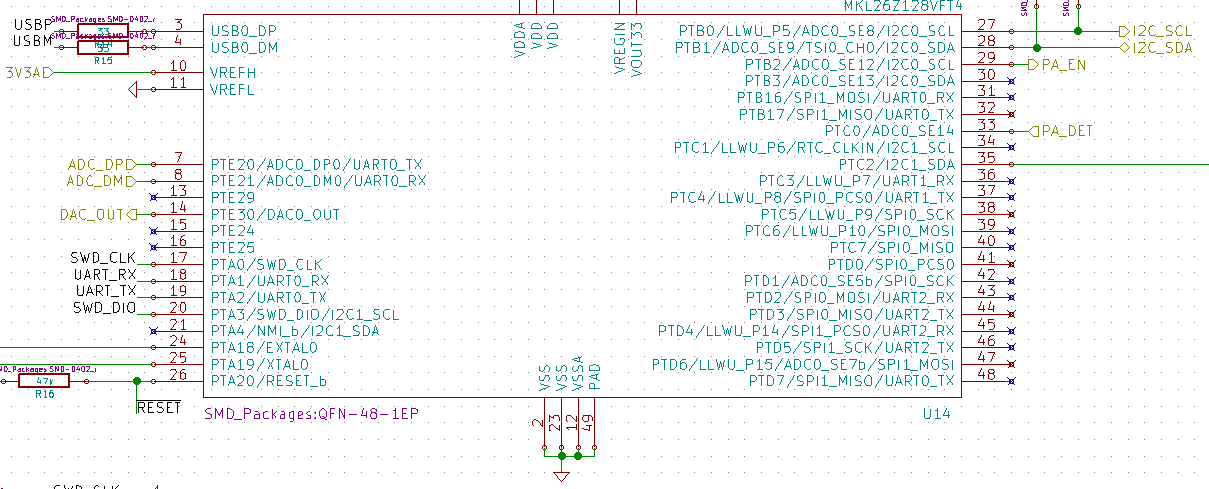 From the software perspective this was very interesting processor. Kinetis offers a Processor Expert tool that can generate the driver code for the peripherals automatically. This makes configuring clocks, ADC, I2C and all other peripherals much easier and it works really well also in practice. There are some things that it doesn't support, for example changing the timer speed at runtime is not possible. Still, it's always possible to use the registers directly to implement the missing functionality.