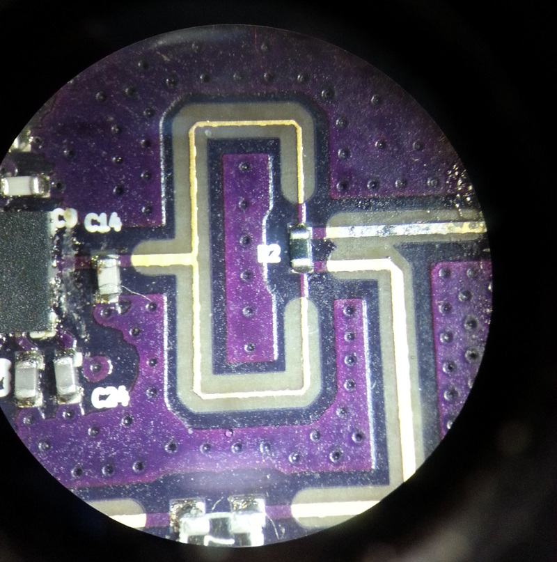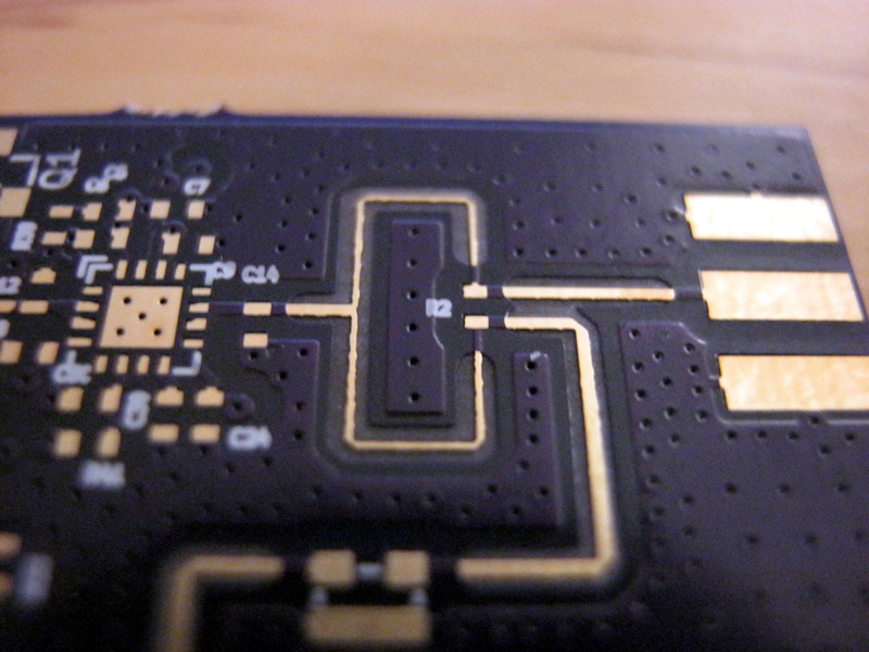Some roughness can be seen on the thin power divider 71 ohm trace edges. It's not very good for performance since width of the trace affects its impedance. Roughness is still low enough that the effect to the impedance should be minimal.